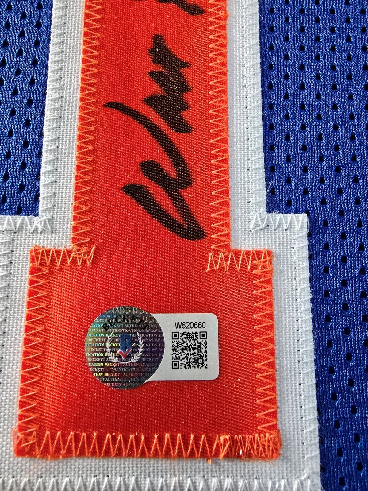 The authentication is from Beckett. This signature is authenticated by a representative of Beckett! 100% AUTHENTIC!!! The jersey has fully stitched numbers on the front and back. It is a great item and a must for all great sports fans!