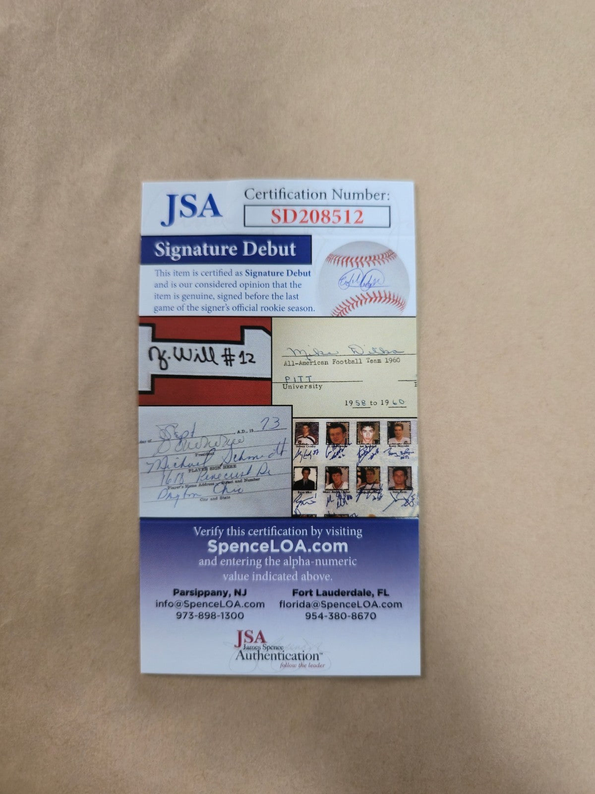 The authentication is from JSA. This signature is WITNESSED by a representative of JSA! 100% AUTHENTIC!!! The jersey has fully stitched numbers on the front and back. It is a great item and a must for all great sports fans!