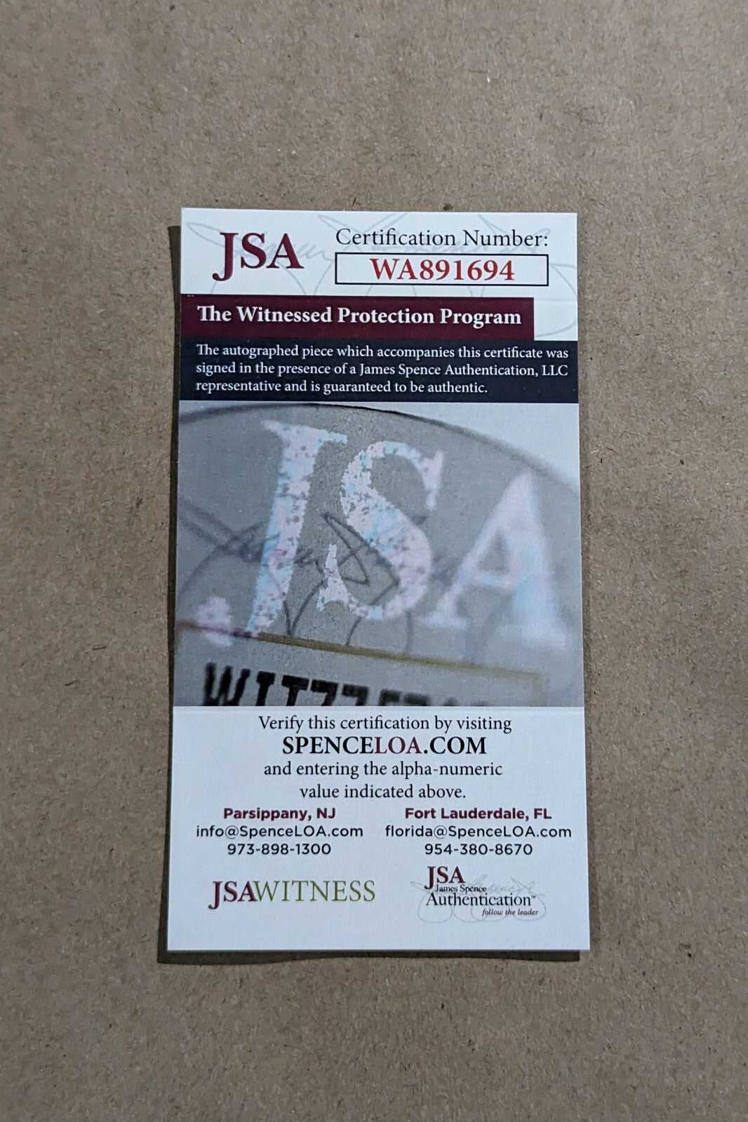 The authentication is from JSA. This signature is authenticated by a representative of JSA! 100% AUTHENTIC!!! The jersey has fully stitched numbers on the front and back. It is a great item and a must for all great sports fans!