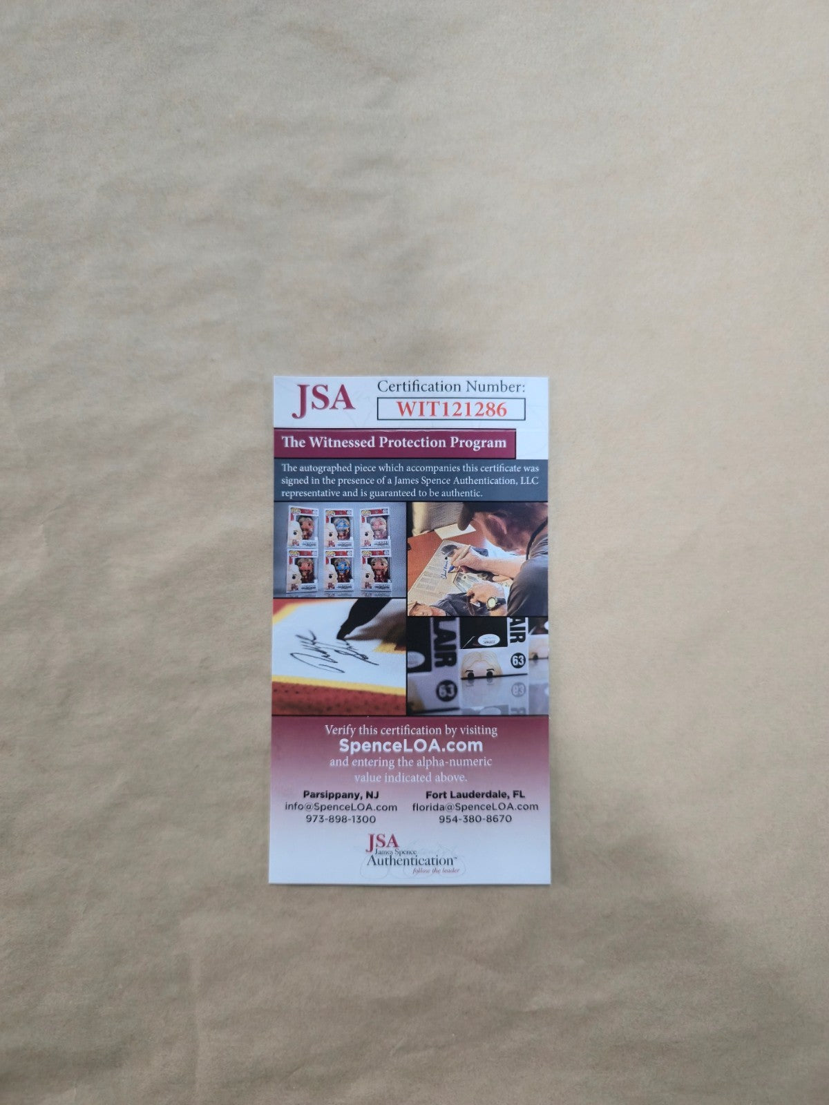The authentication is from JSA. This signature is authenticated a representative of JSA! 100% AUTHENTIC!!! The jersey has fully stitched numbers on the front and back. It is a great item and a must for all great sports fans!