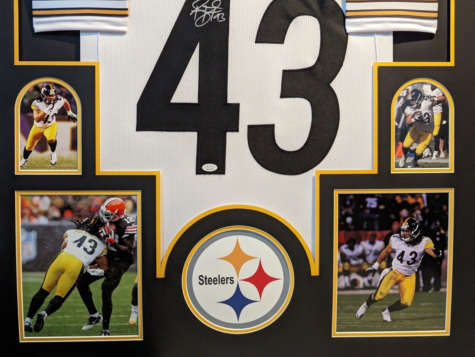 Custom Framed Troy Polamalu hand signed Pittsburgh Steelers style custom jersey.