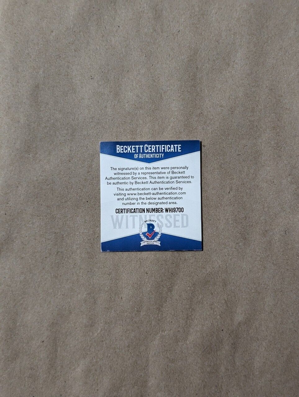 The authentication is from Beckett. This signature is authenticated by a representative of Beckett! 100% AUTHENTIC!!! The jersey has fully stitched numbers on the front and back. No tags or logos. This is not an official NFL jersey but it is very high quality. It is a great item and a must for all great sports fans!