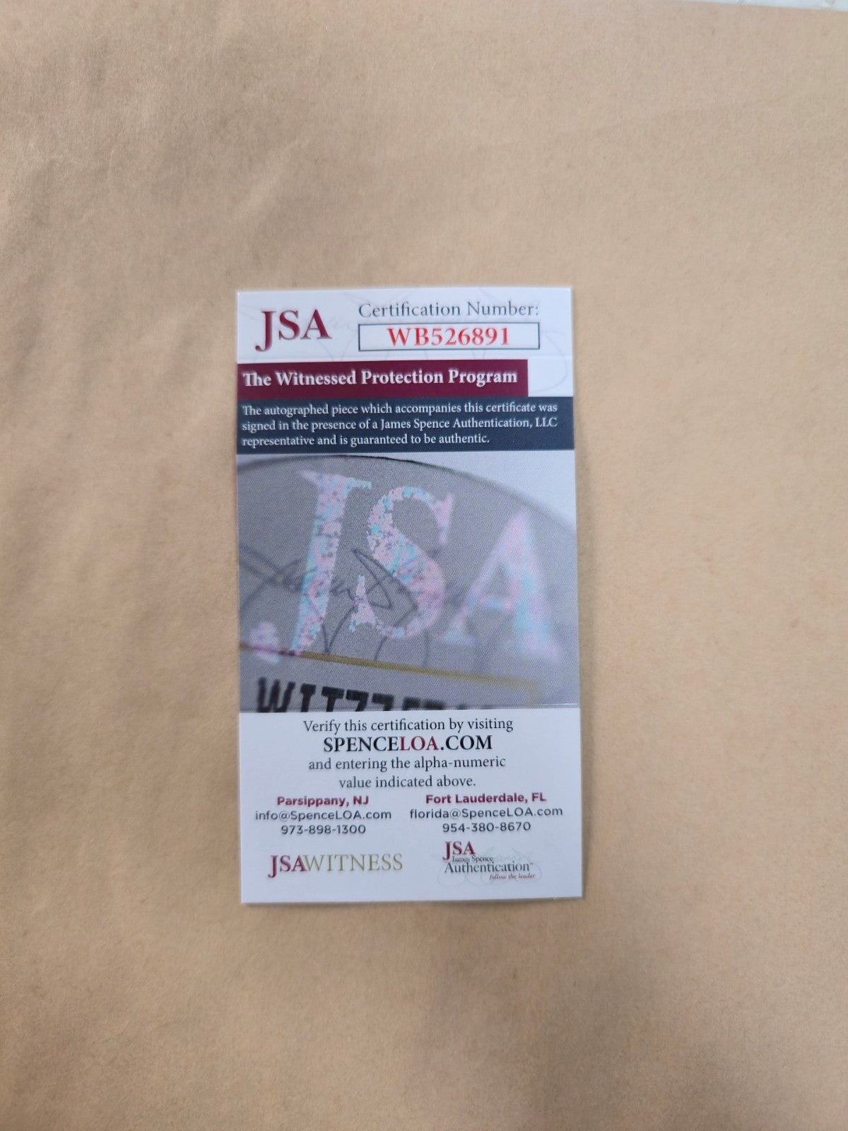 The authentication is from JSA. This signature is witness authenticated by a representative of JSA! 100% AUTHENTIC!!! The jersey has fully stitched numbers on the front and back. It is a great item and a must for all great sports fans