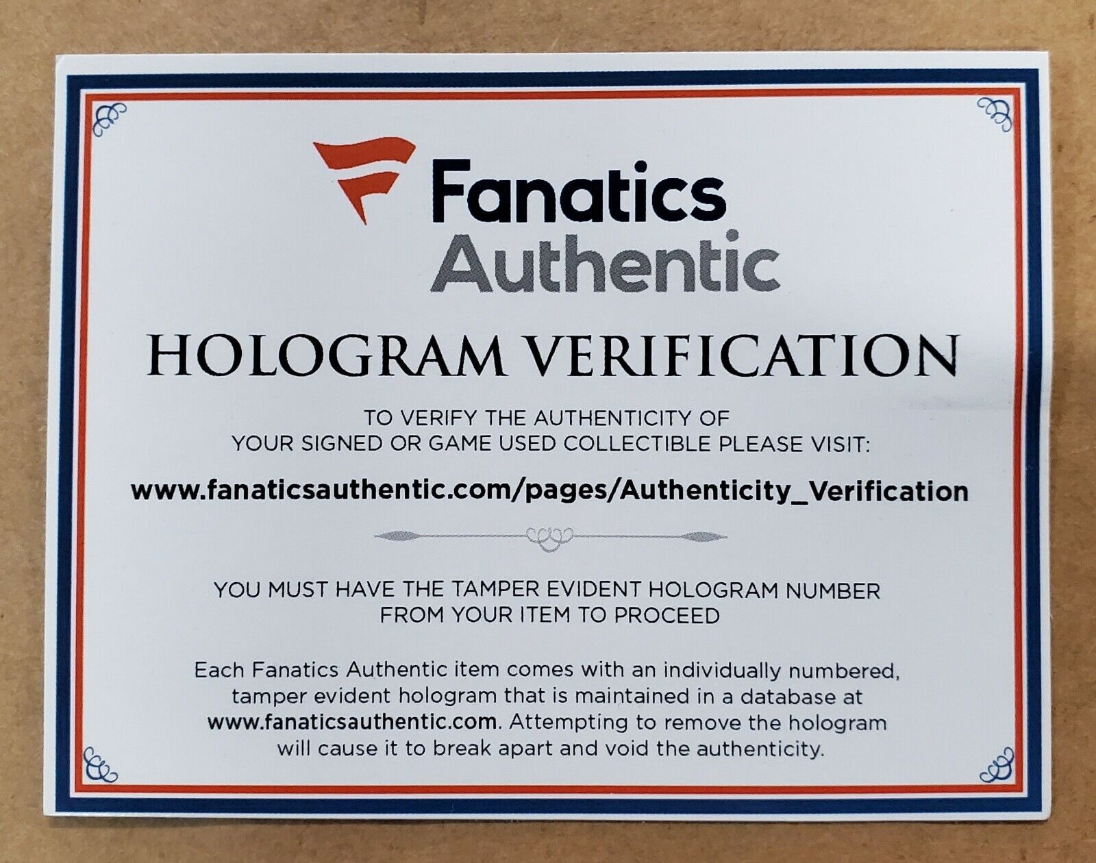 Fanatics Hologram and COA(#A878034)