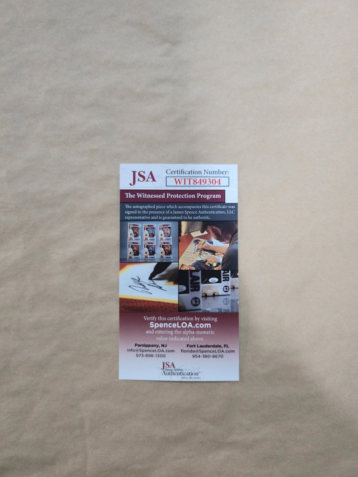 The authentication is from JSA. This signature is authenticated by a representative of JSA! 100% AUTHENTIC!!! The jersey has fully stitched numbers on the front and back. It is a great item and a must for all great sports fans!