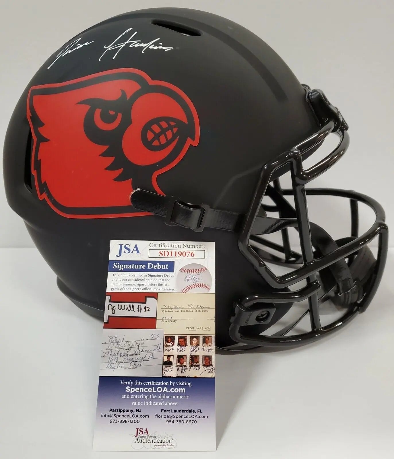 Javian Hawkins hand signed Louisville Cardinals Eclipse Replica Full Size Helmet.