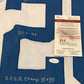 The authentication is from JSA. This signature is authenticated by a representative of JSA! 100% AUTHENTIC!!! The jersey has fully stitched numbers on the front and back. No tags or logos. This is not an official NFL jersey but it is very high quality. It is a great item and a must for all great sports fans!