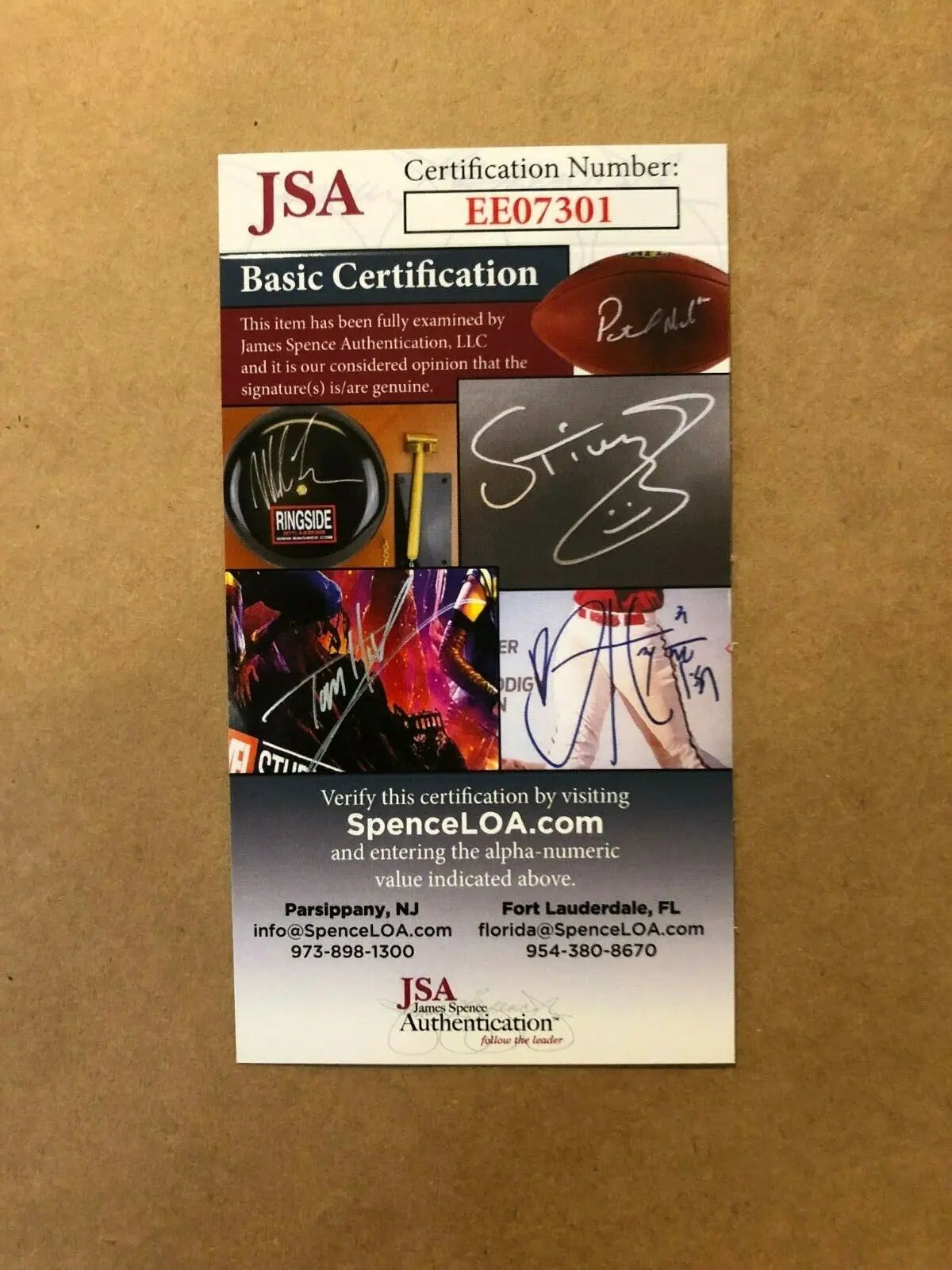 The authentication is from JSA. This signature is authenticated by a representative of JSA! 100% AUTHENTIC!!! It is a great item and a must for all great sports fans!