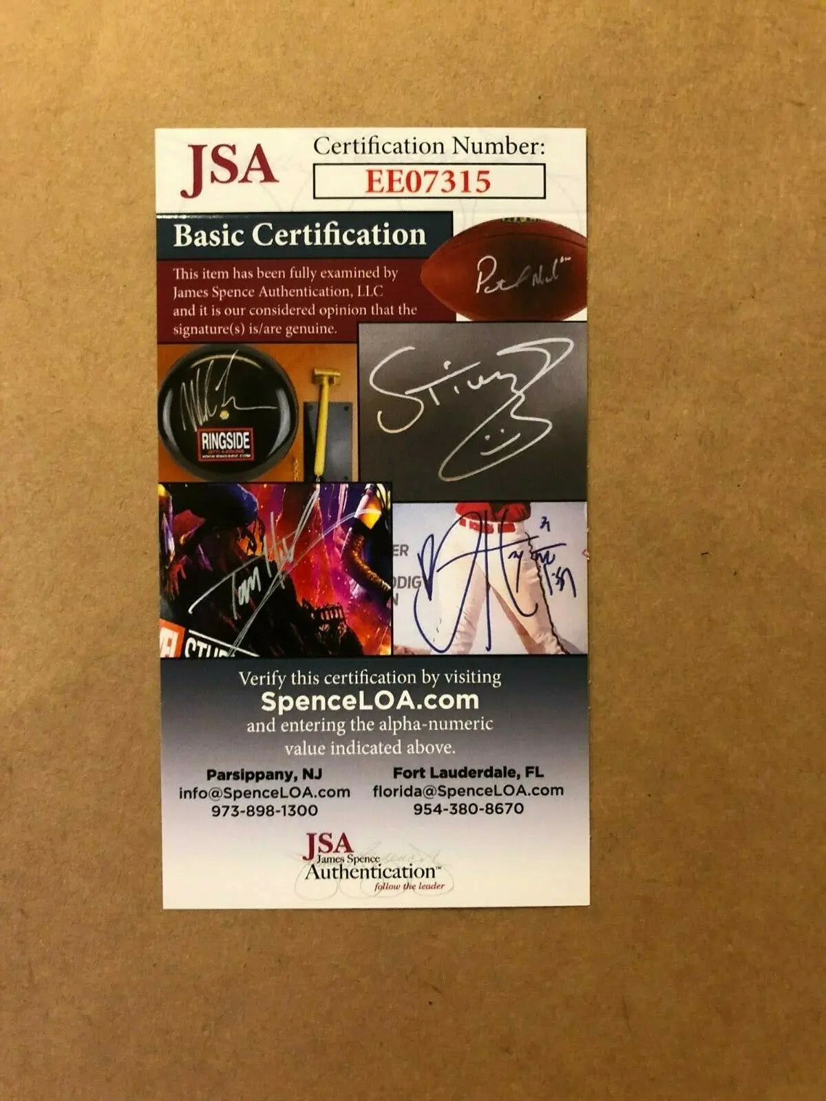 The authentication is from JSA. This signature is authenticated by a representative of JSA! 100% AUTHENTIC!!! It is a great item and a must for all great sports fans!