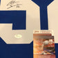 The authentication is from JSA. This signature is not authenticated by opinion but it is WITNESSED by a representative of JSA! 100% AUTHENTIC!!! The jersey has fully stitched numbers on the front and back. No tags or logos. This is not an official NFL jersey but it is very high quality. It is a great item and a must for all great sports fans!