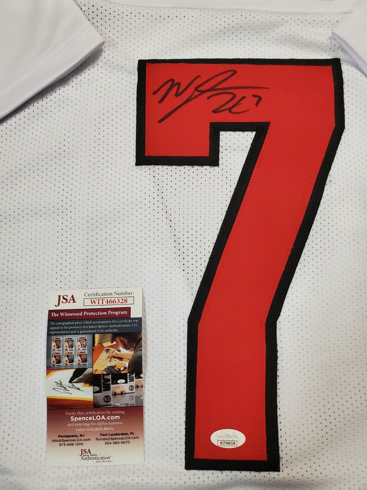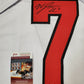The authentication is from JSA. This signature is WITNESS authenticated by a representative of JSA! 100% AUTHENTIC!!! The jersey has fully stitched numbers on the front and back. No tags or logos. This is not an official NFL jersey but it is very high quality. It is a great item and a must for all great sports fans!