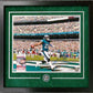 This item is professionally framed, using team color SUEDE matting, black moulding and hanging hooks on the back. High quality Acrylic glass for safe shipping. All additional items in frame seen in pictures included. 100% ready to hang in your fan cave.