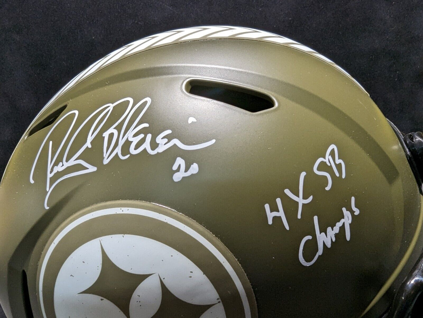 Rocky Bleier signed Pittsburgh Steelers Full size Salute to Service replica helmet.