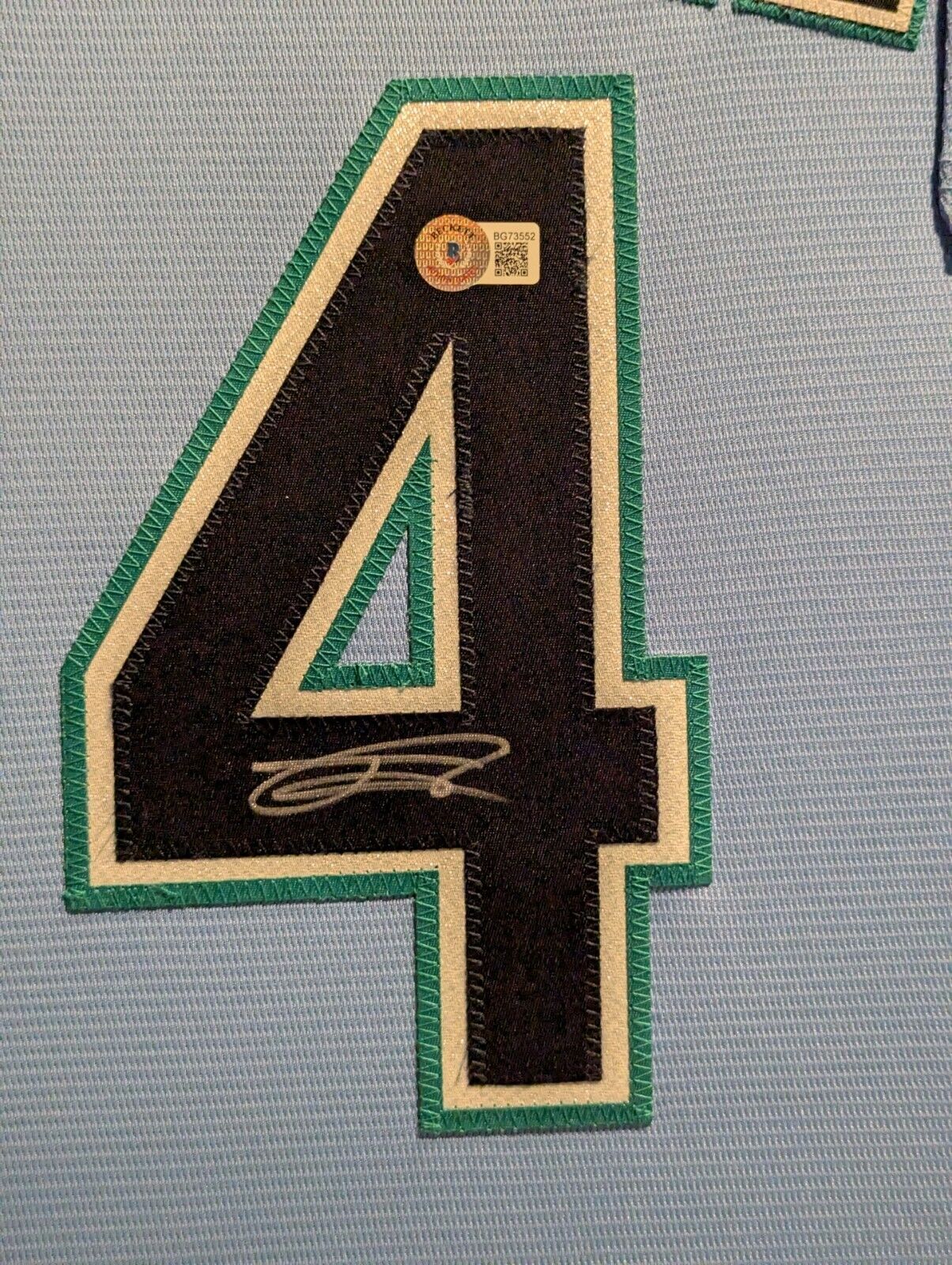 The authentication is from Beckett. This signature is WITNESSED by a representative of Beckett! 100% AUTHENTIC!!! The jersey has fully stitched numbers on the front and back. It is a great item and a must for all great sports fans!
