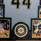This item is professionally framed, it measures 32”x40” inside , 42”x34” outside , using UV protective Acrylic glass for safe keeping and safe transport, SUEDE team color matting, black moulding and hanging hooks on the back. All additional items in frame seen in pictures included. 100% ready to hang in your fan cave.