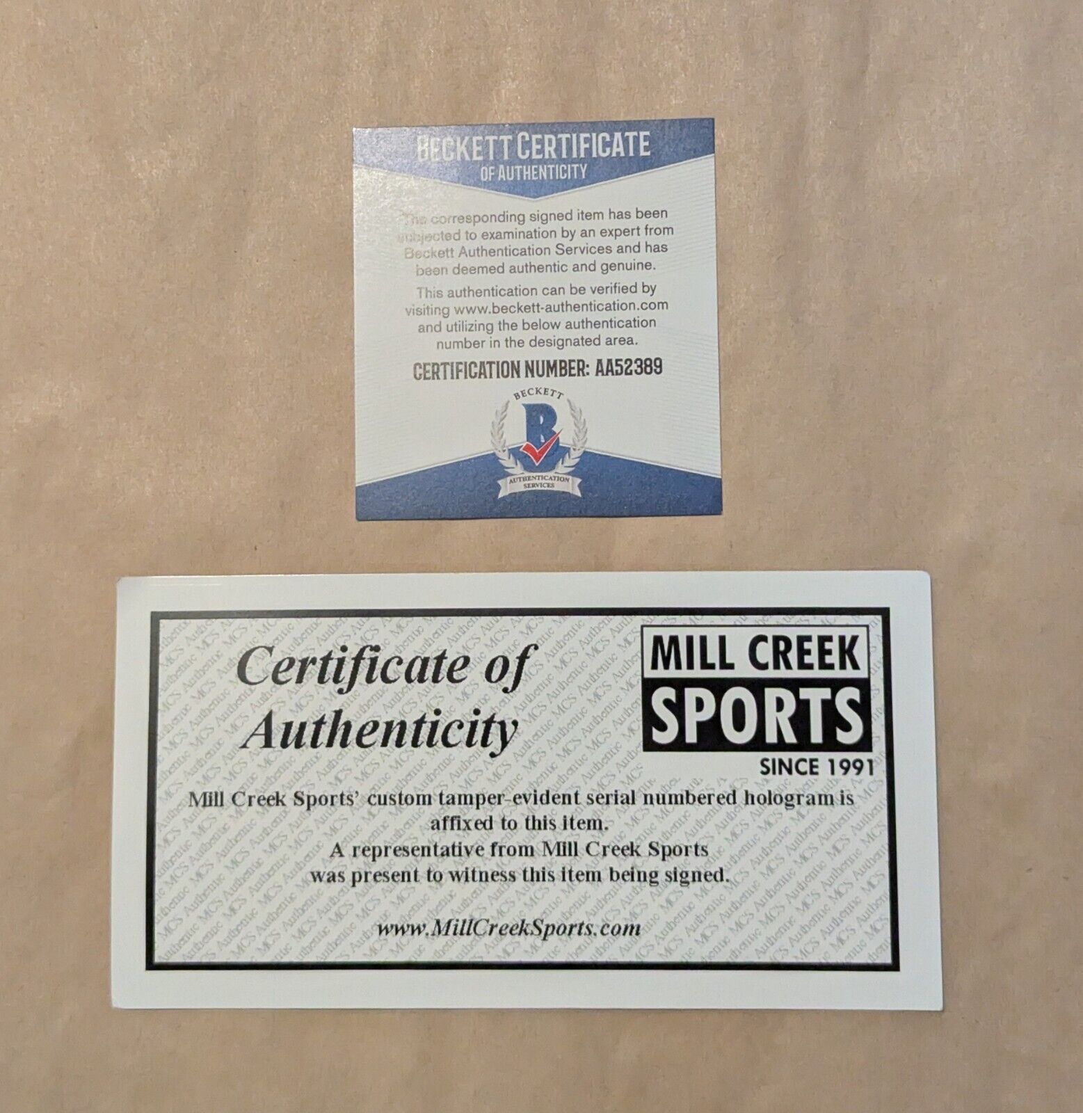 The authentication is from Beckett. This signature is authenticated by a representative of Beckett! 100% AUTHENTIC. The jersey has fully stitched numbers on the front and back. It is a great item and a must for all great sports fans!