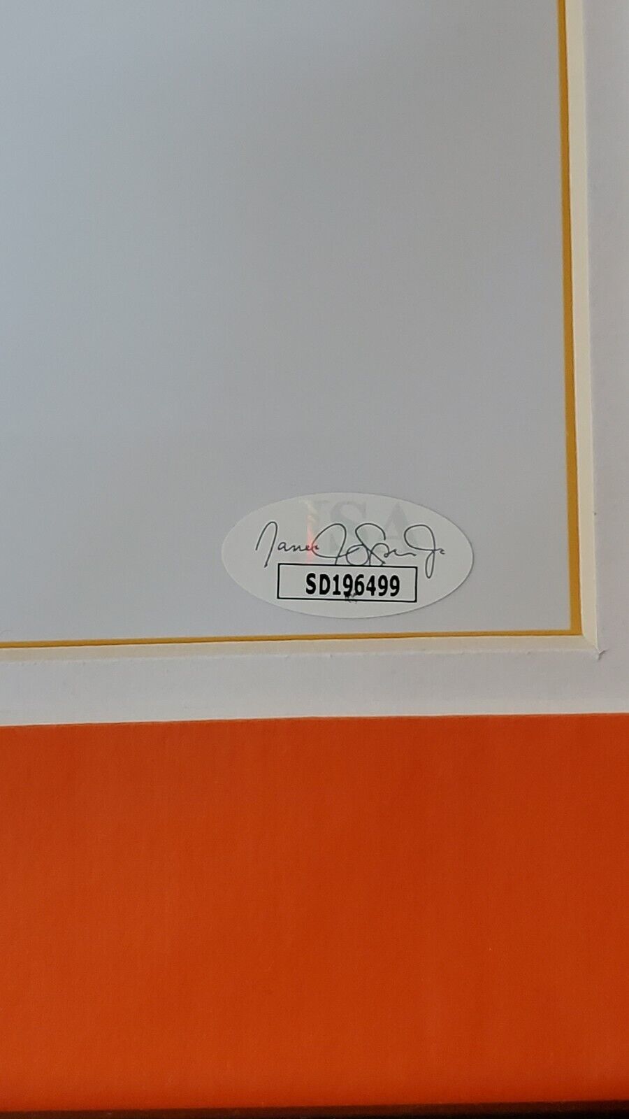 This item is professionally framed, using team color matting, black moulding and hanging hooks on the back. High quality Acrylic glass for safe shipping. All additional items in frame seen in pictures included. 100% ready to hang in your fan cave.