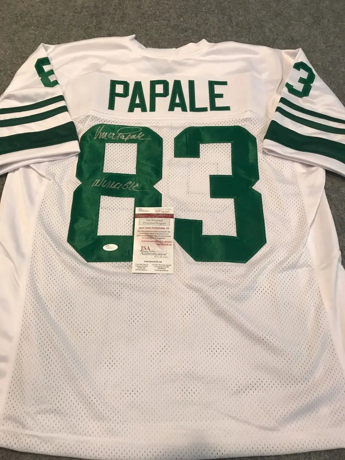 Vince Papale hand signed inscribed "#83 INVINCIBLE" Philadelphia Eagles custom jersey.
