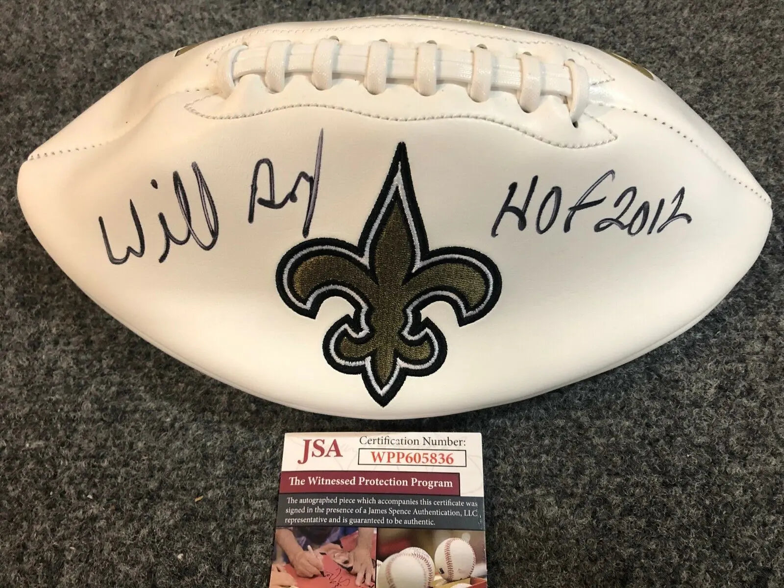 Willie Roaf signed inscribed "HOF 2012" New Orleans Saints football.